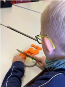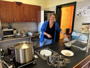 Der Tag begann mit einem spannenden Kochworkshop, bei dem die Teilnehmenden eine frische Gemüsesuppe und geschüttelte Butter zubereiteten. Unter Anleitung schnitten sie Möhren, Kartoffeln und andere Gemüsesorten. Dabei lernten sie, wie wichtig es ist, viel frisches Gemüse in die tägliche Ernährung zu integrieren, um den Körper mit Vitaminen und Nährstoffen zu versorgen. Auch der Spaß kam nicht zu kurz, als sie die Suppe würzten, Butterbrote schmierten und zum Abschluss gemeinsam verkosteten.