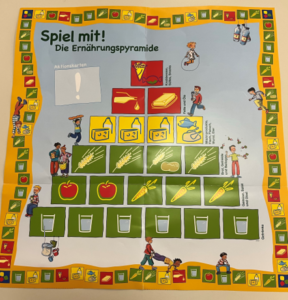 Nach dem Kochen vertieften die Schülerinnen und Schüler ihr Wissen über die richtige Ernährung. In der Mensa wurde die Ernährungspyramide anschaulich erklärt. Diese zeigt, welche Lebensmittelgruppen in welcher Menge verzehrt werden sollten. Die Basis bilden Obst und Gemüse, die reich an Vitaminen, Mineralstoffen und Ballaststoffen sind. Weiter oben in der Pyramide stehen Vollkornprodukte, Milchprodukte und Proteine, während fett- und zuckerreiche Lebensmittel nur in Maßen genossen werden sollten. Die Kinder erfuhren, dass eine ausgewogene Ernährung nicht nur ihre Gesundheit, sondern auch ihre Konzentrationsfähigkeit in der Schule fördert.