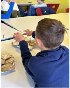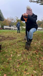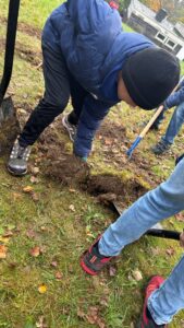 Nach der Theorie ging es ab ins Freie. Auf dem Schulgelände gibt es einen kleinen Acker, auf dem die Schüler zum Beispiel selbst Gemüse anbauen dürfen. An diesem Tag wurden Blumenzwiebeln für das kommende Frühjahr gepflanzt. Dabei lernten die Kinder, wie viel Arbeit in der Bewirtschaftung eines Ackers steckt und wie wichtig Nachhaltigkeit ist. Sie waren begeistert, als sie erfuhren, dass sie im Laufe des Schuljahres beobachten können, wie ihre Blumen wachsen und gedeihen – ein tolles Projekt, das nicht nur Wissen, sondern auch Verantwortungsbewusstsein fördert.