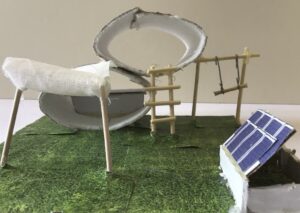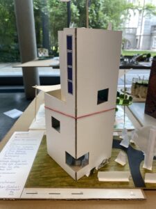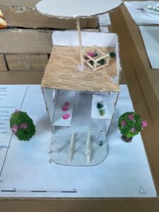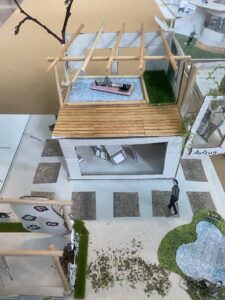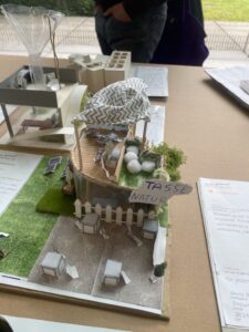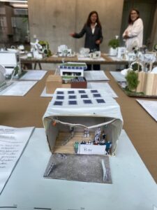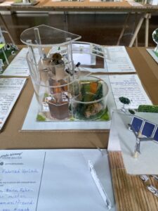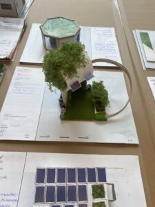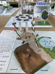 Unsere Schülerinnen und Schüler zeigten dabei großes Engagement, viel Fantasie und ein gutes Gespür für aktuelle Themen. Entstanden sind zahlreiche beeindruckende Modelle, die unterschiedliche Ideen aufgriffen, wie z.B:,Pavillons aus recycelten Materialien, Repair – Cafes ” für Jung und Alt, mobile Kioske mit Solardächern, kleine Bauten als Treffpunkt für Kunst und Kultur, Erholungsbereiche mit Pool oder Yogaräumen, Interaktive Module für Obdachlose kombiniert mit food sharing-Angeboten u.v.m..