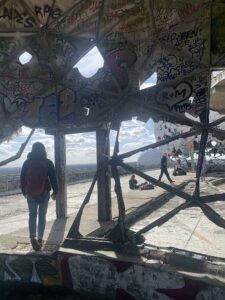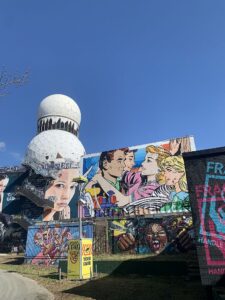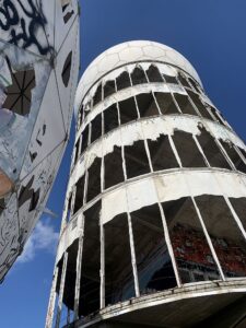 Erster Stopp: Berlin-Teufelsberg. Der mit 120 Metern zweithöchste Berg Berlins besteht aus Schutt zerbombter Häuser, der dort 20 Jahre lang nach dem 2. Weltkrieg abgelagert wurde. Schnell entdeckten die Alliierten die Erhebung für ihre Zwecke und installierten dort eine Abhöranlage der NSA, die das Gebiet bis weit in den Warschauer Pakt hinein abhören konnten. Heute ist dieser Ort Europas größte Street-Art-Galerie. Bis auf die verfallenden Radome kann das ganze Gelände besichtigt werden.