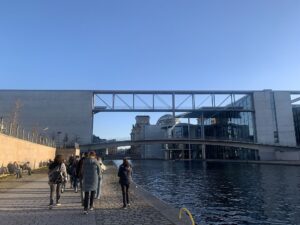 Der Bus brachte uns dann direkt zum Hostel, zentral am Hauptbahnhof gelegen. Nach dem Check-In erwarteten uns Führungen durchs Regierungsviertel (auf dem Programm standen das Holocaustmahnmal, das Denkmal für die von den Nationalsozialisten verfolgten Homosexuellen, das Brandenburger Tor, das Kanzleramt, wo man durch die große Glasfassade ins Büro des Bundeskanzlers blicken konnte).
