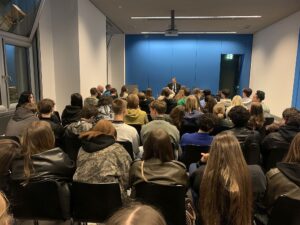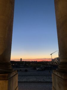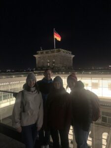 Im Anschluss hatten wir auch schon unseren Termin im Bundestag: zuerst ein Vortrag auf der Besuchertribüne im Plenarsaal und dann ein Treffen mit dem CSU-Abgeordneten Heiko Hain. Er ist der Direktkandidat aus unserem Wahlkreis und vertritt das Hofer Land seit 2025 in Berlin. Die Schülerinnen und Schüler durften ihn mit Fragen löchern – zu seinem Arbeitsalltag in Berlin, aber auch zu konkreten Sachfragen wie der Wehrpflicht. Abschließend fuhren wir in die Kuppel des Reichstagsgebäudes, wo sich uns Berlin bei Nacht beeindruckend präsentierte.
