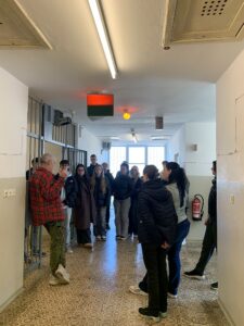 Die Gesichter vieler Teilnehmenden verrieten es beim ersten Frühstück im Hostel: Die Nacht war für einige sehr kurz gewesen! Beim Buffet blieben kaum Wünsche offen und gestärkt ging es gleich über zu nicht so leichter Kost: zur Gedenkstätte Hohenschönhausen, besser bekannt als ehemaliges Stasi-Gefängnis. Bei Führungen in drei Gruppen konnten wir in die Geschichte des Hauses und die Geschichten der Menschen, die dort eingesperrt waren, Einblick bekommen. Ein Guide wurde 1987 beim Fluchtversuch nach Bayern verhaftet und konnte uns als Zeitzeuge von den psychischen Foltermethoden der Stasi-Mitarbeiter in diesem Gefängnis erzählen.