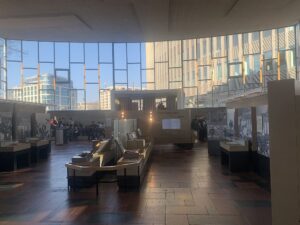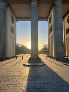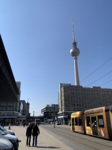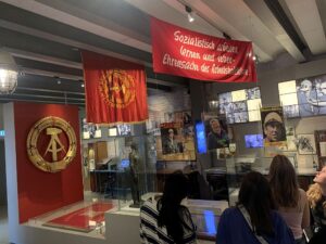 Am dritten Tag checkten wir nach dem Frühstück aus. Draußen wieder herrliches Frühlingswetter. Auf dem Programm standen die Gedenkstätte Deutscher Widerstand und das Museum DDR im Alltag in der Alten Kulturbrauerei. Die Gedenkstätte befindet sich in einem Seitenflügel des Bendlerblocks, Sitz des Bundesministeriums für Verteidigung. In diesen Räumen planten die Widerstandskämpfer des 20. Juli 1944 die Operation Walküre. Hier fanden im Innenhof aber auch die Standesrechtlichen Erschießungen von Stauffenberg und seinen Mitverschwörern statt. Ein Mahnmal erinnert daran. Im DDR-Museum wurden wir durch die Ausstellung mit dem Schwerpunkt „Alltag von Jugendlichen in der DDR“ geführt. Eindrücklich wurde hier das Spannungsfeld vermittelt, in dem man sich in der DDR zurechtfinden musste. Der Wunsch nach Freiheit und einem selbstbestimmten Leben, dazu aber Kontrolle, Überwachung, Indoktrination und Einengung durch das DDR-System. Dass Not beziehungsweise Mangel aber erfinderisch macht, davon zeugten viele der Exponate, wie ein Trabbi mit selbstkonstruiertem Dachzelt.