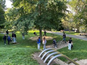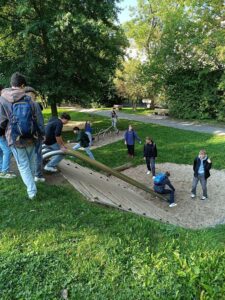 Der zweite Teil stand ganz im Zeichen ‚Wandertag‘. Vom Theresienstein aus ging es bei traumhaftem Sonnenschein und angenehm milden Temperaturen über die Saaleauen zurück in die Altstadt. Ein weiteres Highlight des Tages stellte hierbei der Zwischenstopp am Spielplatz dar 😊.