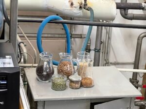 Die erste Station der Brauereiführung war das Sudhaus, wo wir einiges über die Herkunft der Zutaten und verschiedene Malz- und Biersorten erfuhren. Auch der eigentliche Brauprozess sowie die Bedeutung der Zutaten standen hier thematisch auf dem Programm.