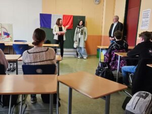 Im Rahmen des Deutsch-Französischen Tages am 22.01. hat die Klasse 10c einen Crêpes-Verkauf in den Pausen organisiert (Teig vorbereitet, Tische aufgebaut, Plakate gebastelt, etc. Die damit verbundenen Einnahmen wollten die Schülerinnen und Schüler für einen guten Zweck spenden, weshalb die Wahl auf die Schutzhöhle in Hof fiel.