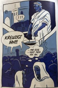 Und was können wir dagegen tun? Auf alle Fälle uns nicht von einem wütenden Mob zu etwas verleiten lassen wie Pilatus. Schalte deinen Verstand ein! Denk selber nach und übernimm nicht die Vorurteile von anderen! Schau nicht gleichgültig weg, wenn andere fertiggemacht werden! Das war die Botschaft der zweiten Passionsandacht.