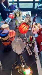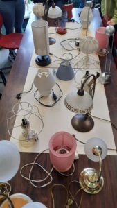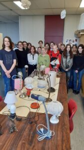 Zwanzig Lampen, ausrangiert – Relikte aus den 90ern und den Nullerjahren; vom Abfallzweckverband gesammelt und uns zur Verfügung gestellt. Das war die Ausgangssituation eines Kunstkurses der Jahrgangsstufe 12, der es sich zur Aufgabe machte, diesen Objekten ein Update und damit verbunden ein großes Umstyling zu verpassen.