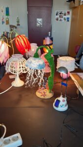 Das Ziel sollte sein, jenen fast schon entsorgten Leuchtobjekte neues Leben einzuhauchen und optisch so zu verändern, dass sie etwas mit den Schülern und Schülerinnen selbst, ihren Interessen und Wünschen tun haben. Und so wurde geschraubt, geklebt, zu Hause gelötet und geschweißt.