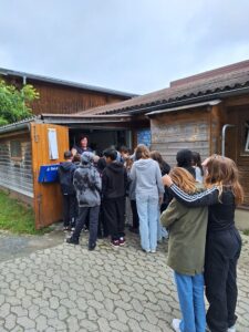 Der Besuch begann mit einer herzlichen Begrüßung durch Frau Wolfrum, die die Schülerinnen und Schüler zunächst über die Struktur und die Ausrichtung des Landwirtschaftsbetriebs informierte und anschließend eine spannende Führung durch die verschiedenen Bereiche des Hofes gestaltete.