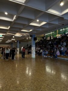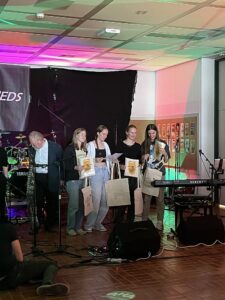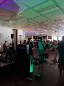 Kurz darauf und frisch gestärkt versammelte sich die Zuschauerschaft vor der Bühne, auf der sich die Hauptacts des Abends bereit machten. Die Schulband gab zunächst einige eigens ausgewählte und erprobte Stücke zum Besten (z.B. Johnny Cash – „Ring of Fire“) und versetzte das Publikum in eine ausgelassene Stimmung, ehe sich die Preisverleihung des Schreibwettbewerbs und des Debattenfinals anschloss.