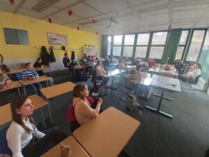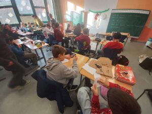 Am Donnerstag und Freitag vor den Weihnachtsferien war es endlich wieder soweit. Frau Popp-Köhler vom AZV war in unseren 5. Klassen und in der Deutschklasse zu Gast und hatte eine tolle weihnachtliche Upcycling-Bastelidee dabei. Unterstützt wurde sie dabei von den Tutoren.