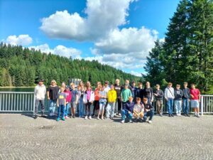 Als krönender Abschluss des Schuljahres fand am 08. Juli eine spannende Exkursion zur Trinkwassertalsperre Mauthaus bei Nordhalben statt. Da in vielen Teilen Oberfrankens das Gestein im Untergrund wenig Wasser speichern kann und Grundwasser in zu geringen Mengen neu gebildet wird, wurde zur Sicherstellung der Trinkwasserversorgung die ab 1968 im Tal der Nurner Ködel bei Mauthaus eine Talsperre gebaut. Hieraus werden aktuell jährlich etwa 13 Millionen Kubikmeter Wasser entnommen und über das Netz der Fernwasserversorgung Oberfranken in die gesamte Region verteilt. Im Sinne der Klimaanpassung hilft die Talsperre auch Hochwasser abzumildern oder bei Trockenheit die Rodach mit mehr Wasser zu versorgen.