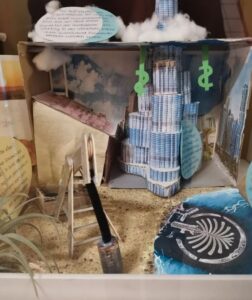 Dabei eigneten sich die SchülerInnen neben Wissen über die Topografie, das Klima und den Naturraum, auch Informationen über die Bevölkerung und ihre Traditionen an. Im Anschluss daran galt es, das erworbene Wissen mit Hilfe eines Informationstextes und in einem Schuhkarton möglichst kompakt sowie kreativ zu einem ausgewählten Thema zu präsentieren. Die ausgestellten Kartons befinden sich derzeit im 2. Stock in den Schaukästen.