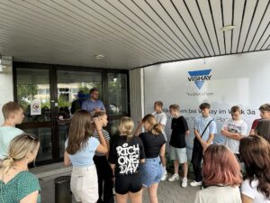 Unsere SchülerInnen lernten die verschiedenen Anwendungen der Vishay-Produkte vom Handy über Autos bis zu zur ESA, der europäischen Raumfahrtagentur, kennen und erhielten einen Einblick in die vielfältigen Berufsfelder sowie Praktikumsmöglichkeiten. Auch für das leibliche Wohl war mit Getränken und kleinen Leckereien bestens gesorgt. Keine einfache Betriebsführung, sondern ein „hautnah“!