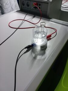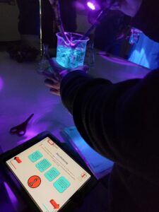 Die Teilnehmer beim Workshop „Escape Room Ausbruch aus fossilen Energien“ befassten sich mithilfe von vier unterschiedlichen Stationen und Experimenten, wie Elektrolyse im kleinen Maßstab oder der Fluoreszenz durch die Flüssigkeit von Kastanienästen, mit erneuerbarer Energie und schafften es innerhalb der gegebenen Zeit durch das Lösen der Rätsel den Code zu knacken.
