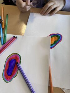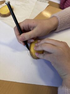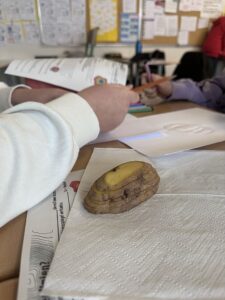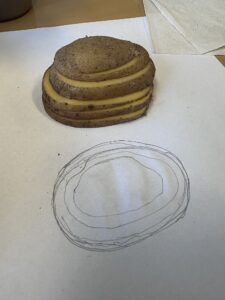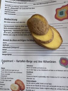 Besonders kreativ wurde es bei der Arbeit mit Kartoffelbergen, um Höhenlinien und Höhenangaben zu veranschaulichen. Die Schüler*innen erstellten mit Hilfe von Kartoffeln, die in 0,5 cm Scheiben geschnitten wurden, Höhenlinien auf einer Karte. Dabei lernten sie, wie Höhenangaben auf Karten dargestellt werden und wie man diese Informationen nutzt, um das Gelände zu interpretieren.