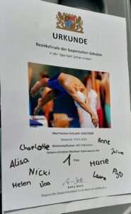 Am vergangenen Dienstag, den 19.03.2024 fand das Bezirksfinale Schwimmen der oberfränkischen Schule in Bayreuth statt. Das Johann- Christian- Reinhart Gymnasium war mit zwei Mädchen-Mannschaften (Altersklasse II: Jahrgänge 2007- jünger/ Altersklasse IV: 2011-2013) stark vertreten.