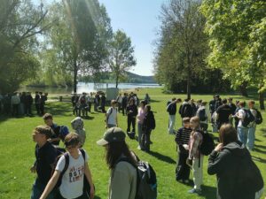 Am vergangenen Tag haben rund 100 Schülerinnen und Schüler des JCRG an einer gemeinsamen Müllsammelaktion teilgenommen. Die Gruppe legte eine insgesamt 12 Kilometer lange Strecke zurück, die sie am Bismarckturm, am Pfaffenteich und am Untreusee vorbeiführte.