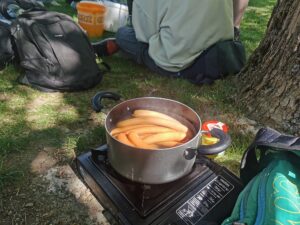 Ausgestattet mit Müllgreifern und Eimern sammelten die Teilnehmer fleißig jeglichen Müll entlang des Weges ein. Insgesamt konnten beeindruckende 48 volle Eimer Müll gesammelt werden. Darunter befanden sich neben typischem Abfall auch besondere Fundstücke wie ein Radio, ein Kindersitz und verschiedene Kleiderbügel.