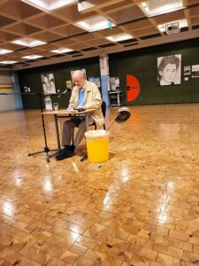 Es ist mucksmäuschenstill an diesem Vormittag in der Aula des Johann-Christian-Reinhart-Gymnasiums, als Niklas Frank den Schülerinnen und Schülern der 11. Jahrgangsstufe aus seinen autobiographischen Büchern vorliest. Denn das, was er zu sagen hat, geht so richtig unter die Haut.