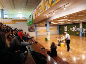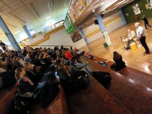 Und so ergibt sich im zweiten Teil nach Franks eindringlichen Worten eine richtig gute Gesprächsrunde mit den Jugendlichen, die dem Journalisten interessiert ihre Fragen stellen dürfen.