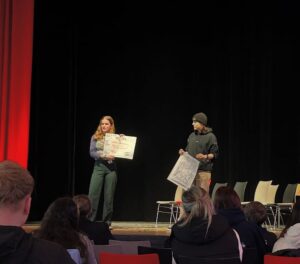 Nach einer Mittagspause starteten verschiedene Workshops mit thematischen Schwerpunkten – sowohl für die Schülerinnen und Schüler als auch für die begleitenden Lehrkräfte. Zum Abschluss des Treffens wurden die Ergebnisse der Workshops von jeweils zwei Teilnehmenden auf der Bühne vorgestellt.