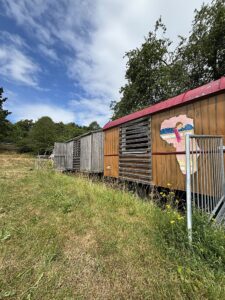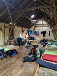 Die längste Etappe der Woche forderte alle: Blasen, Regen, müde Beine. Doch mit Musik, gegenseitiger Motivation und vielen Gesprächen wurde auch dieser Tag gemeinsam gemeistert. Der Abend klang mit Gesang und viel Gelächter in einem alten Schlafwagon aus – eine Übernachtung, die in Erinnerung bleibt.