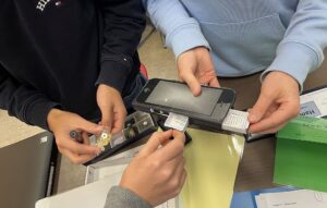 Die Schülerinnen und Schüler arbeiteten engagiert in Gruppen und näherten sich dem Thema auf vielfältige Weise. Sie verorteten Herkunftsländer von Rohstoffen auf der Weltkarte, tasteten unterschiedliche Materialproben und berechneten den Anteil der Arbeitskosten am Endpreis eines Handys. Ergänzend kamen kurze Video- und Audiobeiträge sowie spielerische Elemente zum Einsatz. Dabei erweiterten sie ihr geografisches Wissen über globale Lieferketten und Produktionsbedingungen und stärkten gleichzeitig ihre Kompetenzen im Fach Deutsch: Sie recherchierten und werteten Informationen aus, diskutierten sachlich in der Gruppe und reflektierten über die Wirkung von Sprache in Texten und Medien. Die Kombination aus fächerverbindendem Unterricht und den interaktiven Elementen machte das Lernen dabei nicht nur lehrreich, sondern auch spannend und unterhaltsam.