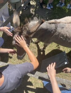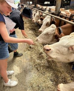 Nach der herzlichen Begrüßung und der Einführung in die Betriebsstruktur durch Frau Wolfrum lernten die Schülerinnen und Schüler bei einer Führung über den Hof die vielfältigen Aufgaben kennen, die in der Landwirtschaft anfallen. Sie konnten so hautnah miterleben, wie ein moderner Bauernhof funktioniert und bekamen zudem interessante Einblicke in die Milchviehaltung und in die Funktion einer Biogasanlage. Besondere Highlights war dabei sicherlich das Füttern und Streicheln der Kühe, der Kälbchen und des Esels sowie die Arbeit der Melkmaschine.