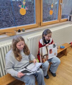 so lauteten die Titel der Kinderbücher, die die Schülerinnen des Wahlkurses „Welt der Bücher – Schülerbibliothek“ den Vorschulkindern des Christus-Kindergartens Hof vorlasen.