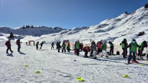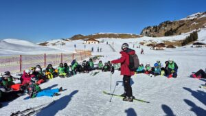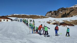 Für die Skifahrerinnen und Skifahrer begann der Tag jeweils nach dem Frühstück um 8:45 Uhr mit der Abfahrt zur Piste. Bis 16:00 Uhr wurde in unterschiedlichen Kleingruppen trainiert. Während die Anfänger grundlegende Techniken wie sicheres Bremsen, Kurvenfahren und Liftbenutzung einübten, arbeiteten die Fortgeschrittenen an ihrer Fahrtechnik und bewältigten zunehmend anspruchsvollere Abfahrten.